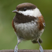 With their white cheeks and dark caps and throats,Chestnut-backed Chickadees look much like Black-capped Chickadees. However the caps of Chestnut-backs are brown rather than black, and their backs, shoulders, and sides are a deep chestnut color. They are also slightly smaller than Black-capped Chickadees. Males, females, and juveniles share similar plumage.