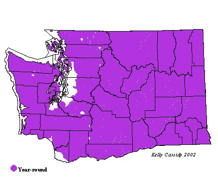 Common Ravens are fairly common and widespread throughout the year in non-urban areas of Washington. They are generally absent from the developed corridor from Stanwood to Olympia (Snohomish-King-Pierce-Thurston Counties) and from the Vancouver (Clark County) area. They are most common east of the Cascade Crest but at times are common along Washington's outer coast.
