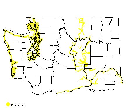 Fairly common coastal migrant. Uncommon fall east.