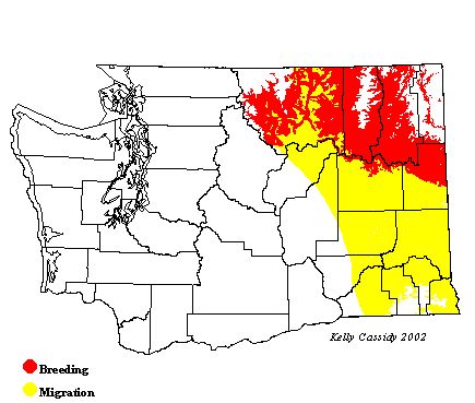 Atypical of most migratory birds, adult Least Flycatchers migrate south before molting in the fall. First-year birds molt before and during migration. Some populations appear to head east before they turn south to Mexico. Males arrive on the breeding grounds in the spring ahead of females, but no significant difference has been found in fall movement. They return to Washington in late May and leave by mid-August. Adults spend a very short period of time on the breeding grounds, only about two months. The entire time is needed to raise a single brood.