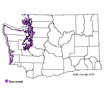 Northwestern Crows can be found year round in coastal Washington and Puget Sound.