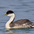 Western Grebes are highly gregarious in all seasons, wintering in large flocks and nesting in colonies. The neck structure of Western Grebes allows them to thrust their beaks forward, like spears, a motion they use to catch prey. As a family, grebes are known for their elaborate courtship displays. Western Grebes and the closely related Clark's Grebes perform the most spectacular displays of the family. The displays of Western and Clark's Grebes are almost identical; the only apparent difference is that one of many calls differs in the number of notes.