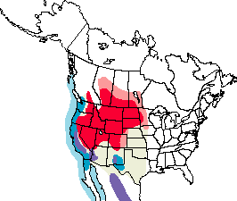 In winter Western Grebes are found mostly on saltwater bays. During the breeding season they are found on freshwater wetlands with a mix of open water and emergent vegetation. The breeding areas are located in the central arid steppe and Big Sage/Fescue zones stretching from California north and east to south-central Canada.